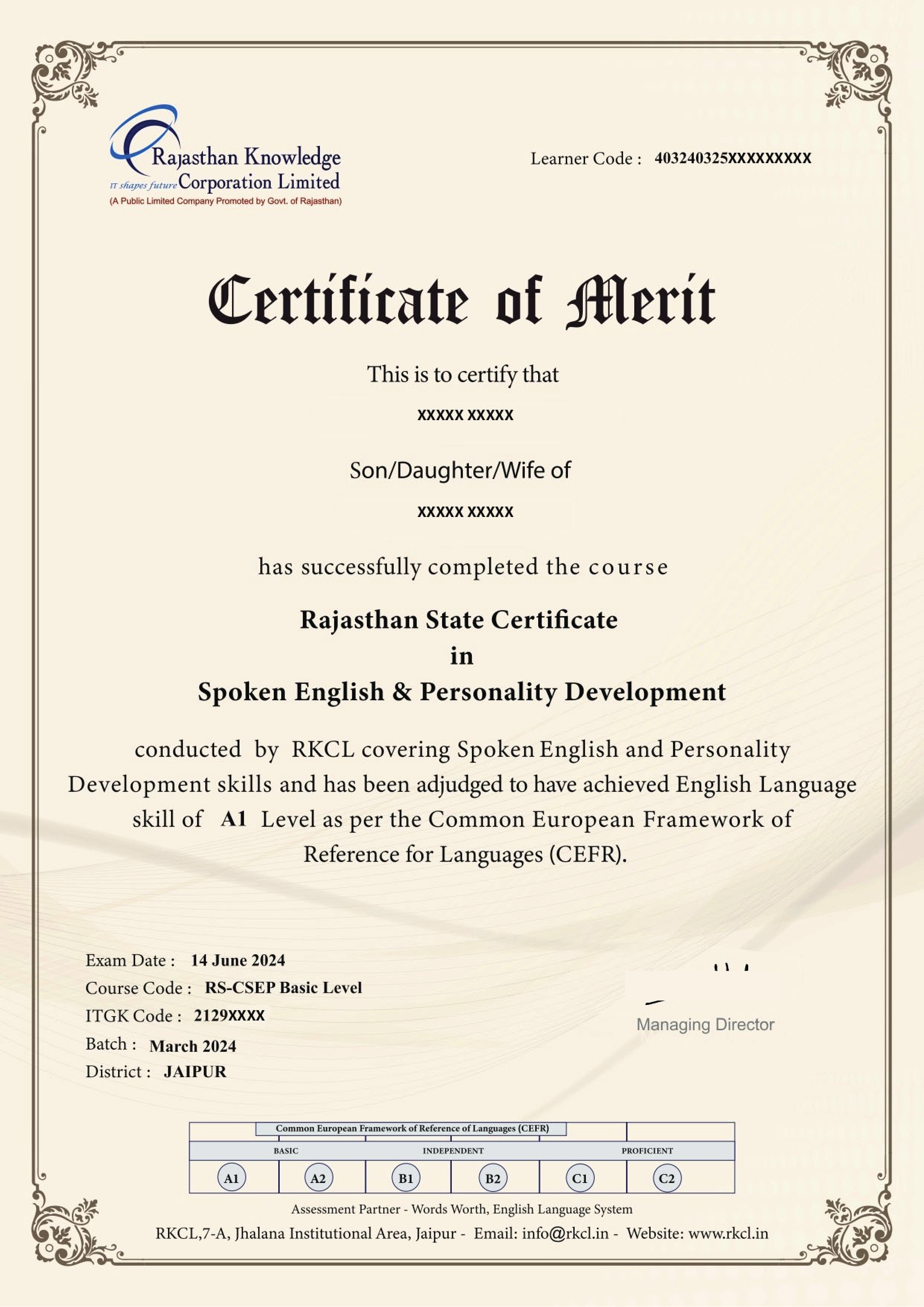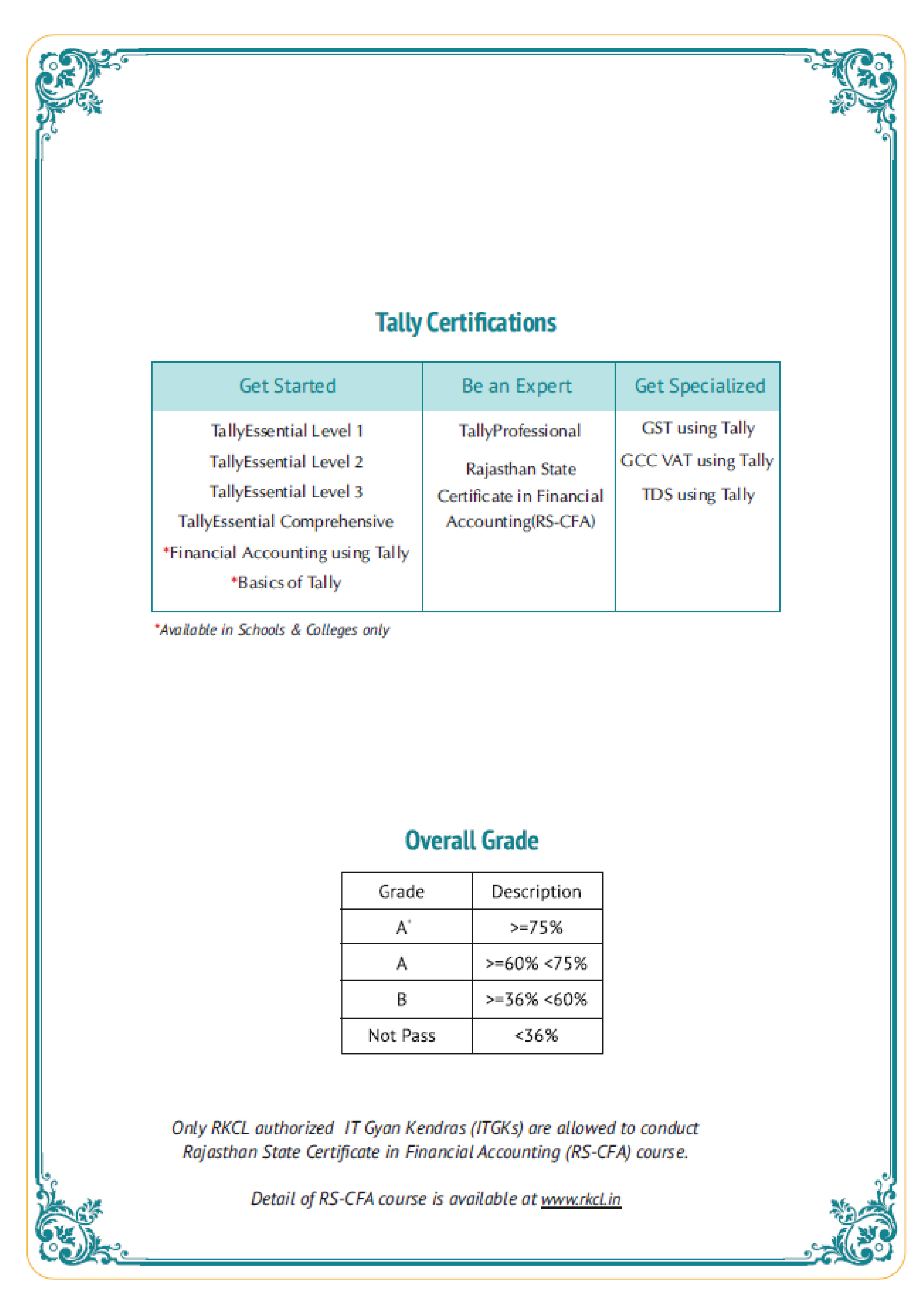 RSCFA with Tally Certification Front