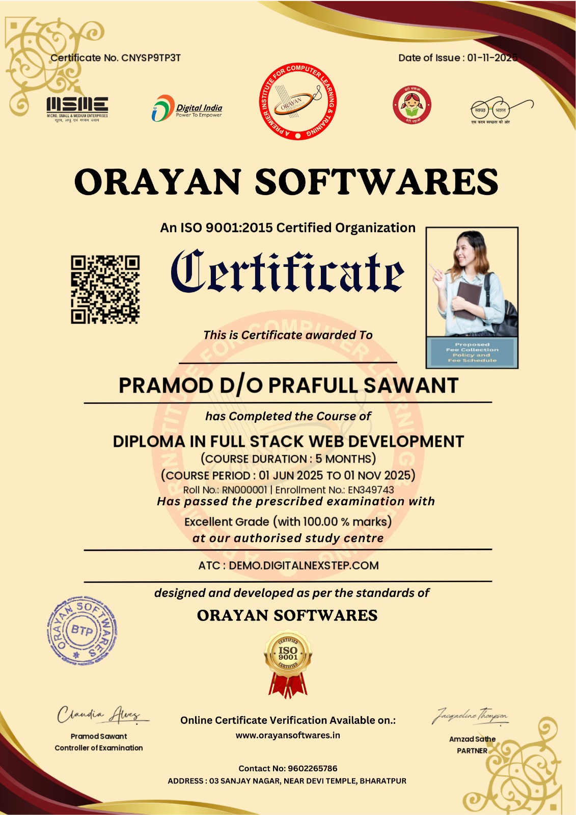 Orayan Softwares Certificate